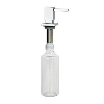 Dozownik do płynów mocowany w blacie, zlewozmywaku lub umywalce, Element dozujący mosiądz KWADRATOWY.