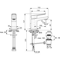 Bateria umywalkowa stojąca PERFEXIM S3, chrom (błyszczący), czasowa