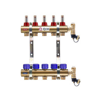Rozdzielacz do ogrzewania podłogowego QIK MAGNET PREMUIM IV 5-obieg. mosiądz gw 1'' x gz 3/4'' + przepływomierz