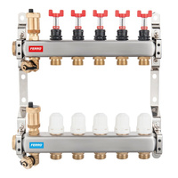Rozdzielacz do ogrzewania podłogowego FERRO SN-RZPU11S 11-obieg. stal nierdzewna GW 1'' x GZ 3/4'' + przepływomierz + termostat + zawór napełn/spust + odpowietrznik