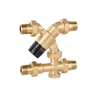 Regulowany termostatyczny zawór mieszający z zaworami zwrotnymi, filtrami na wlotach i złączkami zaciskowymi O 15 30-65 st. C