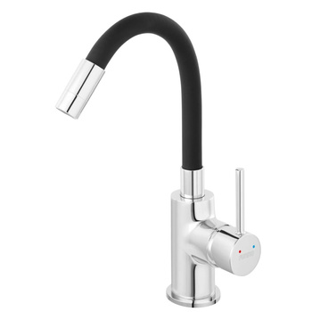 FIESTA bateria umywalkowa, czarna elastyczna wylewka, chrom