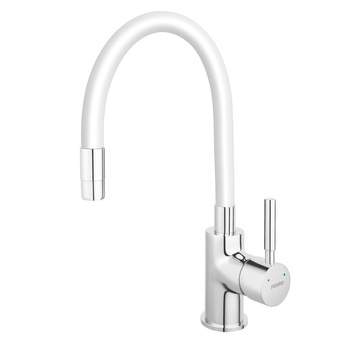 Bateria zlewozmywakowa FERRO ZUMBA Inox, kolor stal, elastyczna biała wylewka