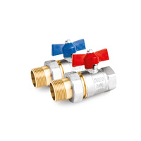 Rozdzielacz hydrauliczny HERZ T-Less mosiądz C.W.U. GZ x GW 3/4'', odgałęzień: 2 Eurocono (3/4''), do wody pitnej + zawory odcinające