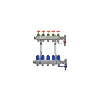 Rozdzielacz do ogrzewania podłogowego QIK Optimo BASIC III PC - RNZT-2-50 2,5l 5-obieg. inox GW 1'' x GZ 3/4'' + przepływomierz