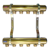 Rozdzielacz do instalacji c.o. QIK mosiądz GW 1'', 15-obieg. GZ 3/4''