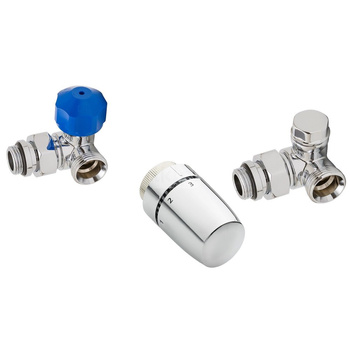Zestaw biały narożny prawy zawór termostatyczny, powrotny, głowica