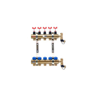 Rozdzielacz do ogrzewania podłogowego QIK STANDARD II 5-obieg. mosiądz gw 1'' x gz 3/4'' + przepływomierz
