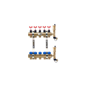 Rozdzielacz do ogrzewania podłogowego QIK BASIC II 5-obieg. mosiądz gw 1'' x gz 3/4'' + przepływomierz