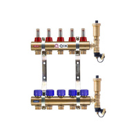 Rozdzielacz do ogrzewania podłogowego QIK BASIC II TN 5-obieg. mosiądz gw 1'' x gz 3/4'' + przepływomierz