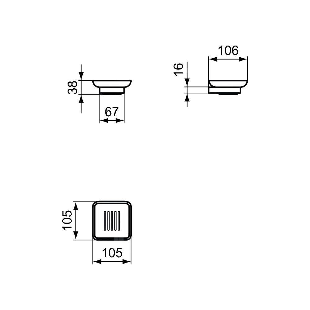 Mydelniczka Conca wisząca kwadratowa. Szkło matowe. Zestaw montażowy w komplecie. Dostępne wykończenia: - technologia galwanizacji (AA), - technologia PVD (GN, A2, A5).