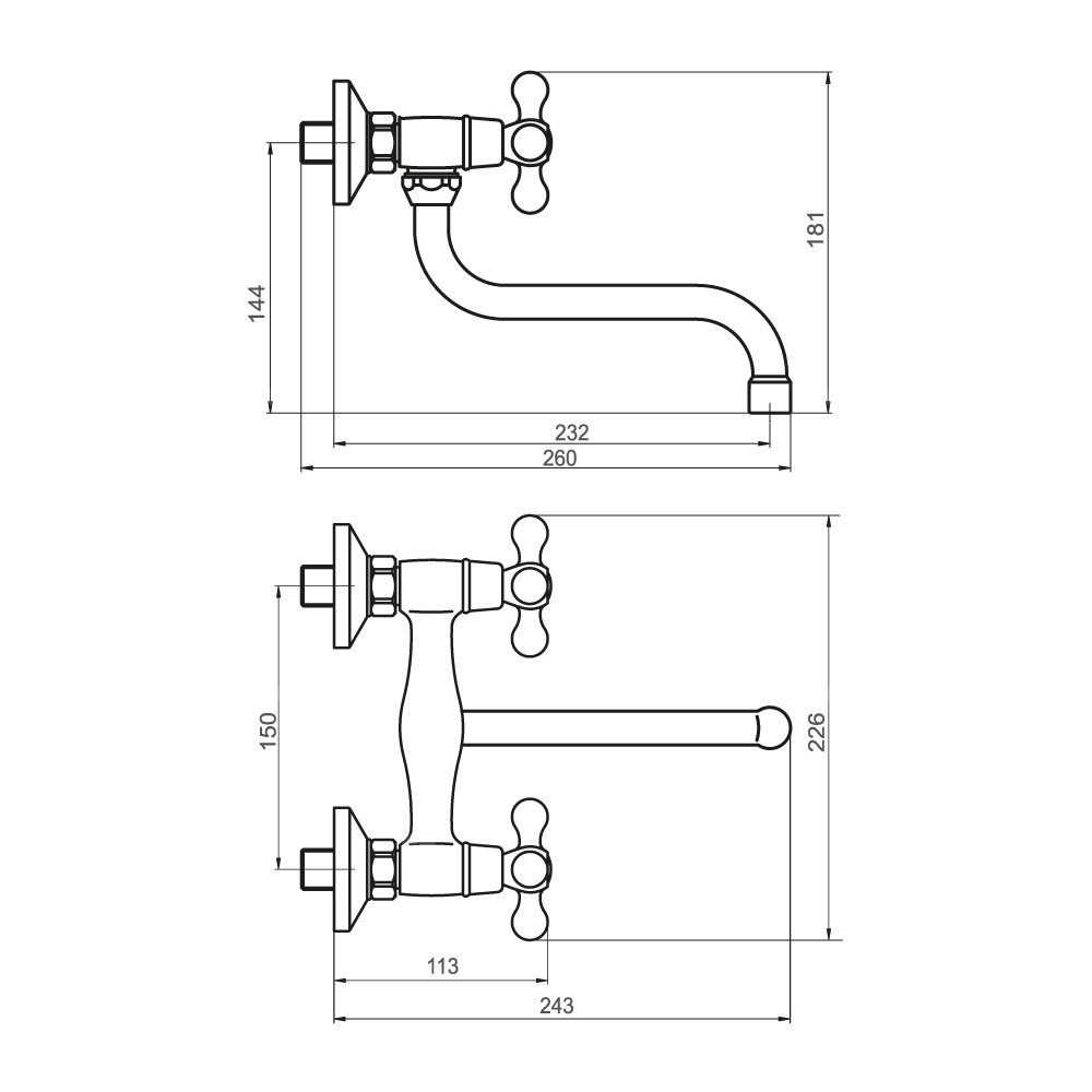 ANTICA bateria zlewozmywakowa ścienna, stary brąz
