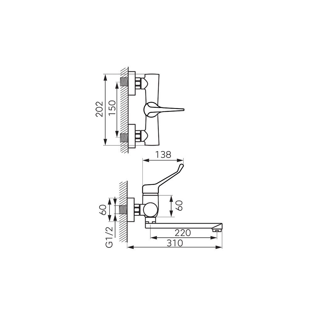 - przyłącze mimośrodowe G½ rozstaw 150 ± 20 mm
