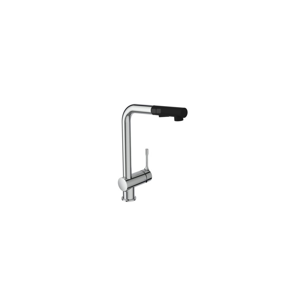 Bateria kuchenna stojąca BlueStart z wysoką wyciąganą wylewką. Wysoka ruchoma i wyciągana wielofunkcyjna wylewka typu L. Metalowy uchwyt z nadrukowanymi czerwonymi i niebieskimi oznaczeniami. Technologia Cold Start - przepływ wody zimnej wody. Ukryty aerator. Głowica FirmaFlow 38 mm, z ogranicznikiem temperatury. Technologia Click. Wężyki przyłączeniowe G3/8”. System montażu Easy-Fix. Zgodność z normą EN817.
