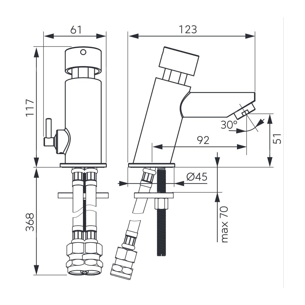 Presstige Pro bateria umywalkowa czasowa z regulacją wypływu i z wbudowanym mieszaczem, chrom: