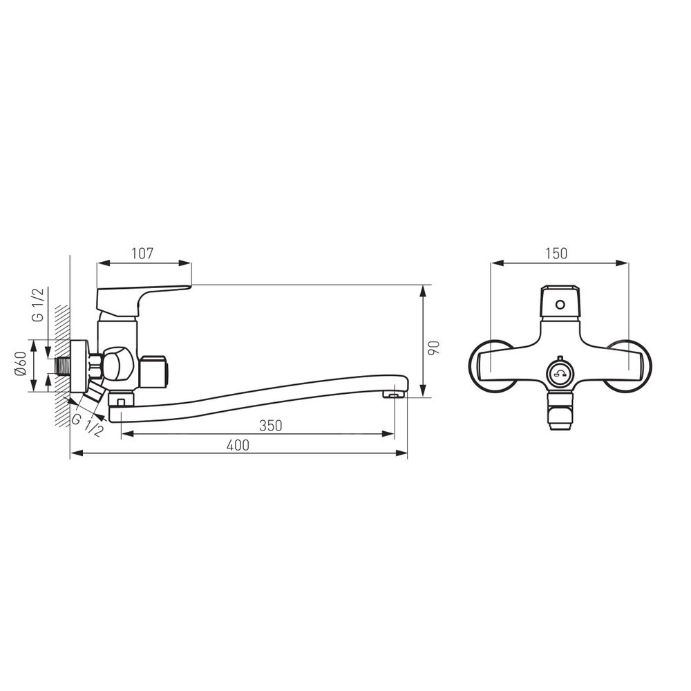 Bateria umywalkowo-wannowa ścienna FERRO TIGA, kolor chrom