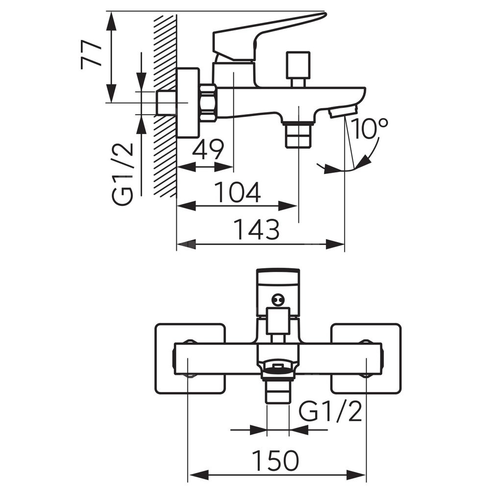 • przyłącze mimośrodowe G1/2, rozstaw 150 ± 20 mm