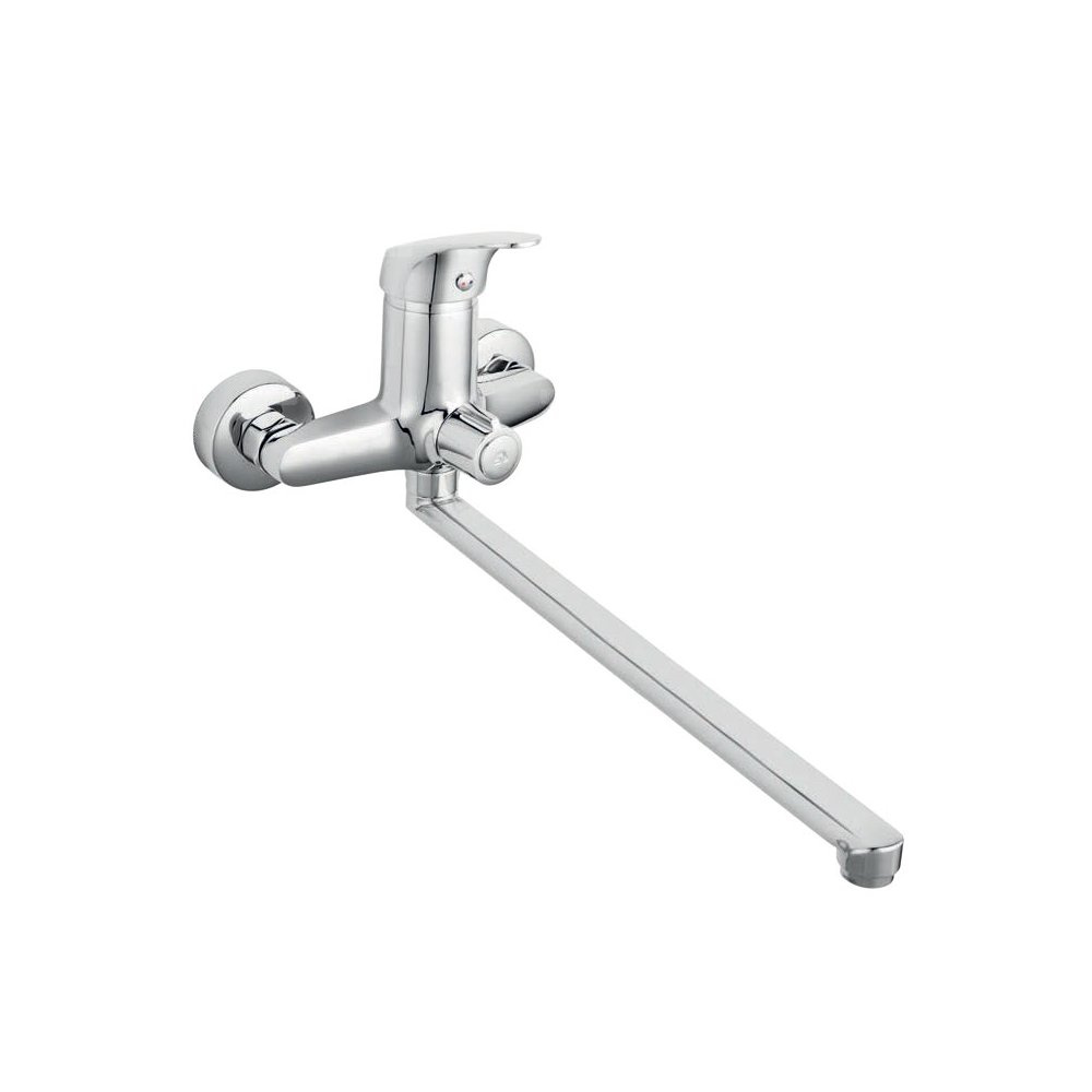 Bateria umywalkowo-wannowa ścienna z przyłączem natrysku, chrom:
