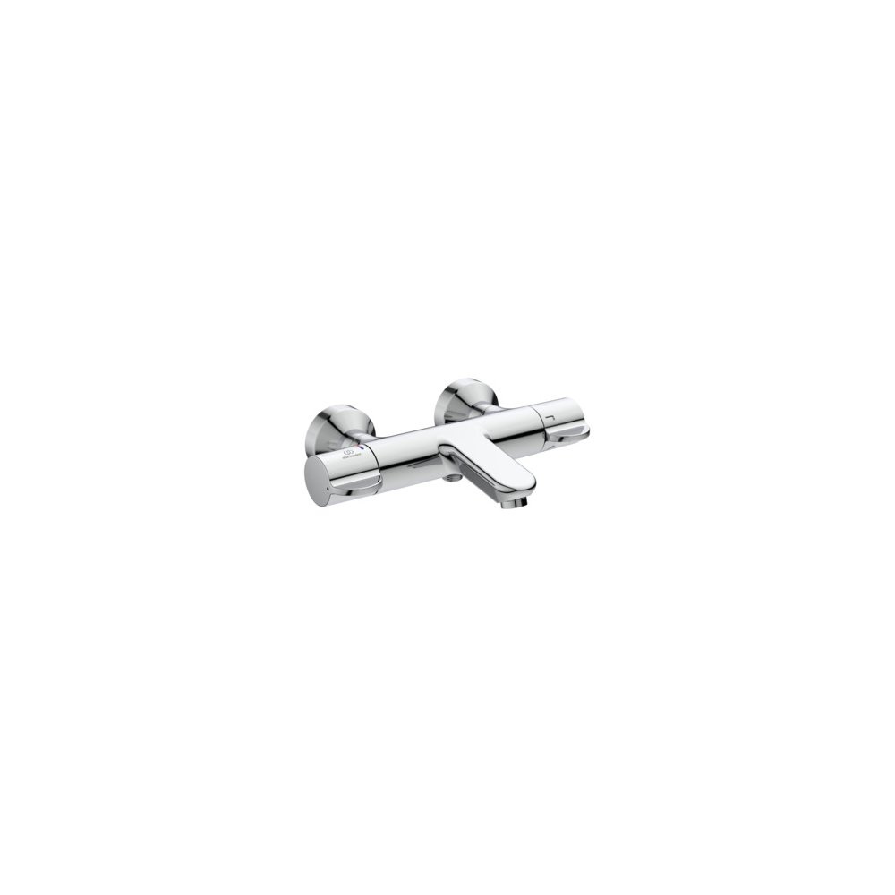 Bateria termostatyczna Ceraplus 2 wannowo-natryskowa ścienna. Funkcja Cool Body, zapobiegająca ryzyku poparzenia przez nagrzany korpus baterii oraz funkcja dezynfekcji termicznej. Przełącznik manualny wanna/natrysk. Głowica termostatyczna IS. Wandaloodporny perlator ograniczający napowietrzenie strumienia wody. Uchwyt z funkcją ograniczenia temperatury wody do 40 st. C. Bateria z zaworami zwrotnymi, ukryte przyłącza mimośrodowe baterii.