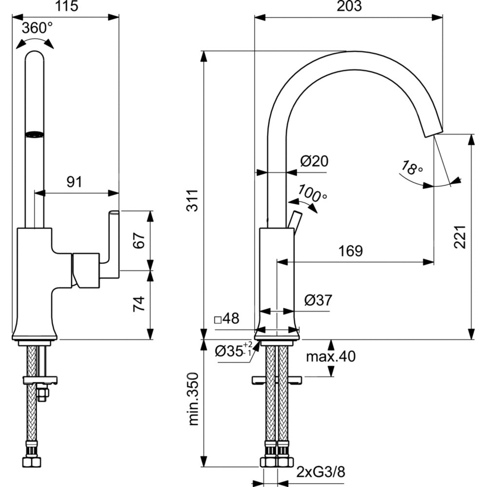- Min. głębokość: 203 mm