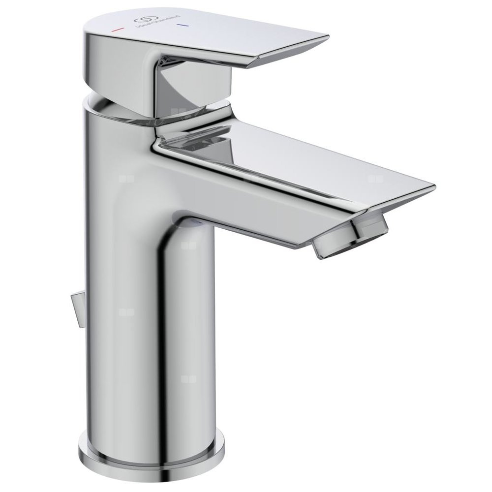 Bateria umywalkowa Tesi z metalowym automatycznym korkiem. Głowica ceramiczna IS 28 mm z ogranicznikiem temperatury. Mosiężny, odlewany korpus. Metalowy uchwyt z nadrukowanymi czerwonymi i niebieskimi oznaczeniami. Perlator typu Cascade z ogranicznikiem przepływu wody do 5 l/min. Wężyki przyłączeniowe G3/8".