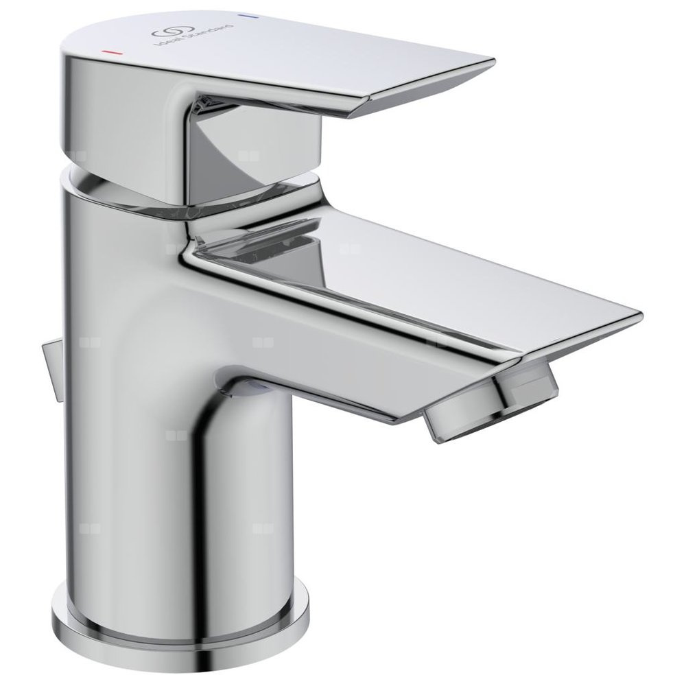 Tesi bateria umywalkowa Piccolo jednootworowa z metalowym automatycznym korkiem. Głowica ceramiczna IS 28 mm z ogranicznikiem temperatury. Mosiężny, odlewany korpus. Metalowy uchwyt z nadrukowanymi czerwonymi i niebieskimi oznaczeniami. Perlator typu Cascade z ogranicznikiem przepływu wody do 5 l/min. Wężyki przyłączeniowe G3/8".