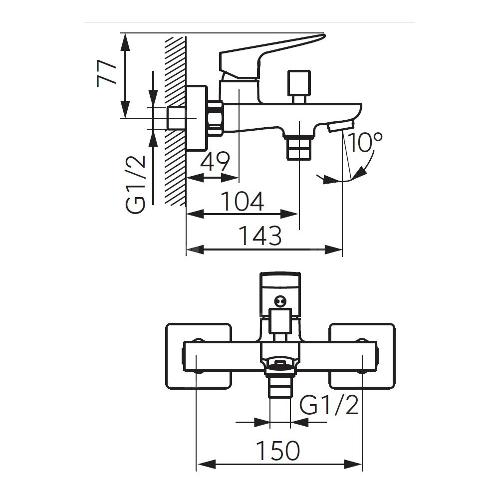 • przyłącze mimośrodowe G1/2, rozstaw 150 ± 20 mm
