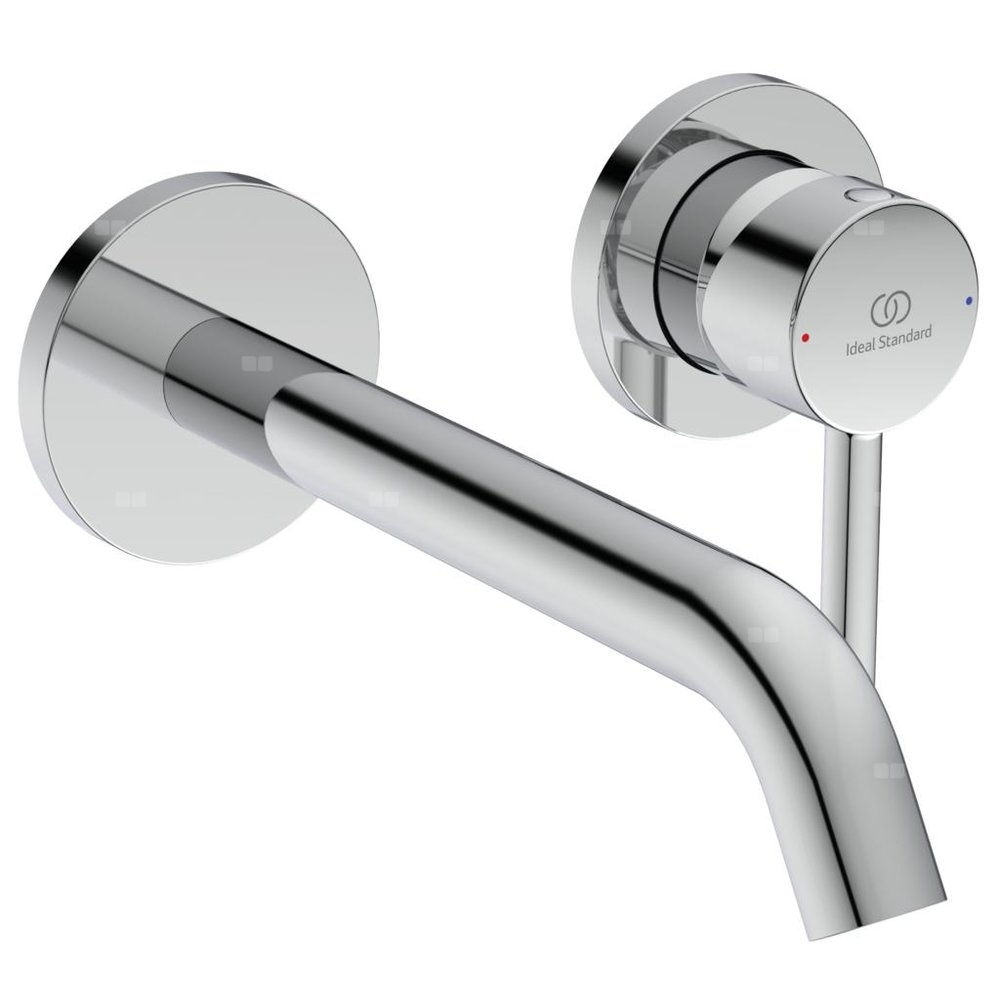 Zestaw montażowy podtynkowej baterii umywalkowej Ceraline. Głowica FirmaFlow 28 mm z ogranicznikiem temperatury. Metalowy uchwyt z nadrukowanymi czerwonymi i niebieskimi oznaczeniami. Wylewka rurowa 180 mm. Perlator typu Cache. Do skompletowania z elementem montażowym: A1313NU (część wewnętrzna).