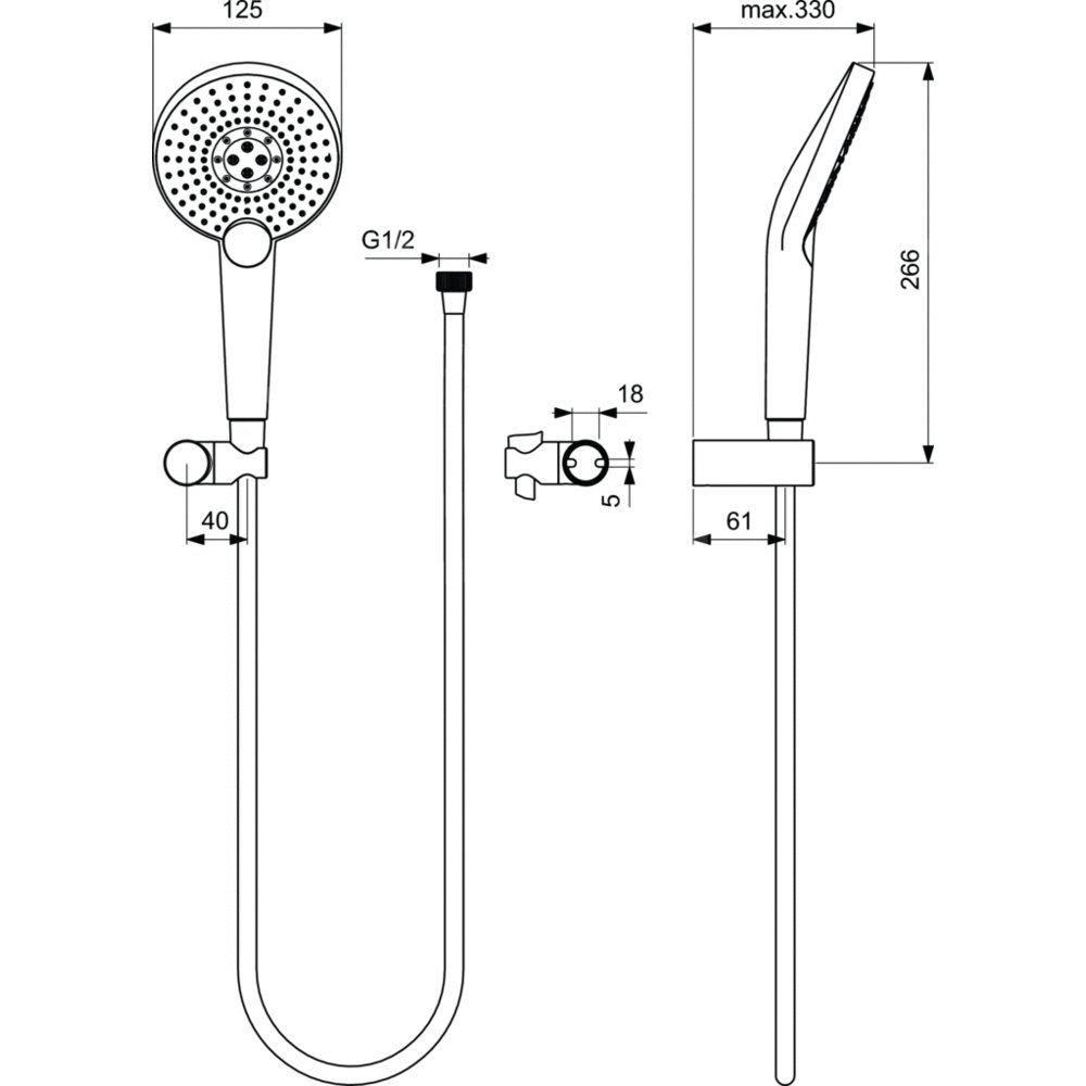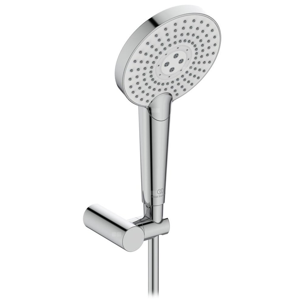 Zestaw natryskowy EvoJET, okrągła słuchawka prysznicowa, uchwyt ścienny. Trzyfunkcyjna okrągła słuchawka średnicy Ø 125 mm. Wąż Idealflex 1750 mm. Uchwyt ścienny.