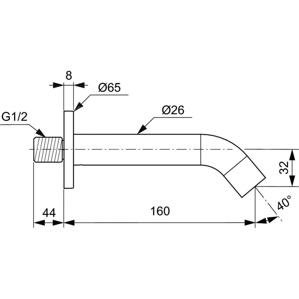 Wylewka długości 180 mm. Metalowa chromowana rozeta ᴓ65 mm z logo Ideal Standard. Aerator laminarny typu Caché M24x1i. Podłączenie G1/4.