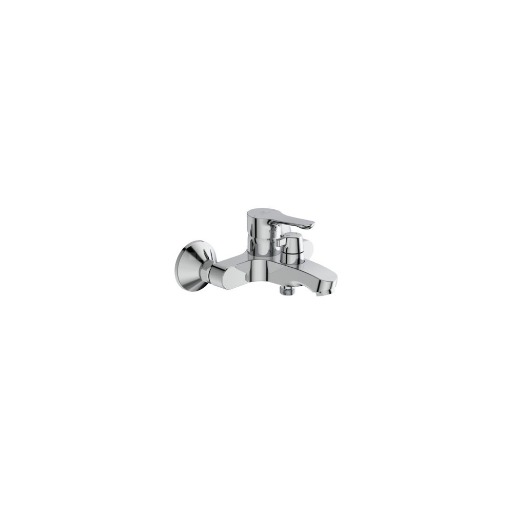 Głowica ceramiczna 35 mm z ogranicznikiem temperatury. Metalowy uchwyt z nadrukowanymi czerwonymi i niebieskimi oznaczeniami. Zawór zwrotny. Przyłącza mimośrodowe. Aerator (perlator). Ceramiczny przełącznik manualny wanna/natrysk. Zgodność z normą EN817.
