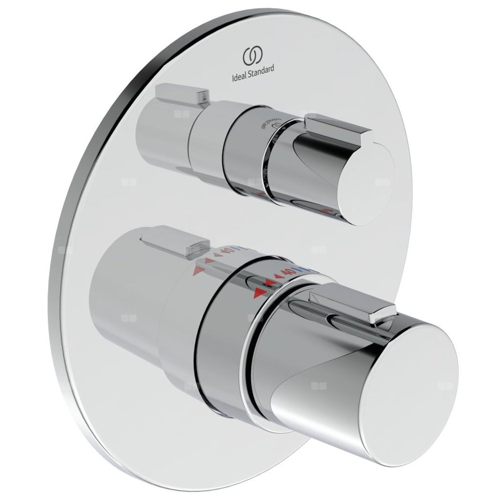 Zestaw montażowy baterii termostatycznej natryskowej podtynkowej (część zewnętrzna). Z głowicą termostatycznną IS (nowa technologia). Ceramiczny zawór talerzowy włącz/wyłącz 90° i przyłączem gwint 3/4''. Bez zintegrowanego przełącznika. Bez akcesoriów w komplecie. Niezbędne wyposażenie: zestaw montażowy A1000NU (część wewnętrzna).