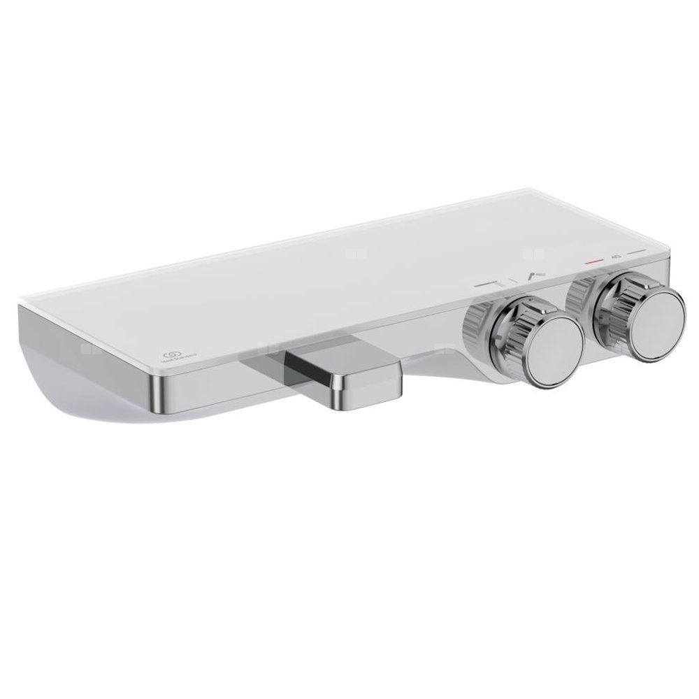 Ukryte przyłącza mimośrodowe, zintegrowane z korpusem baterii. Głowica termostatyczna IS nowej technologii. Regulacja temperatury termostatu przez pokrętło. Uchwyt z ogranicznikiem temperatury do 40°C. Regulacja mocy przepływu przez pokrętło, głowica ceramiczna G1/2’’ 90°. Funcja ECO redukcjąca przepływ wody wody o 50%. Wylewka z aeratorem Neoperl M24x1 w technologii SSR (regulacja strumienia wody). Łatwe użytkowanie dzięki pokrętłom umiejscowionym od frontu. Półka wykonana z bezpiecznego szkła w kolorze białym. Przyłącze natryskowe G1/2". Zintegrowane zawory zwrotne w przyłączach baterii. Funkcja Cool body zapobiegająca poparzeniu przez korpus baterii.