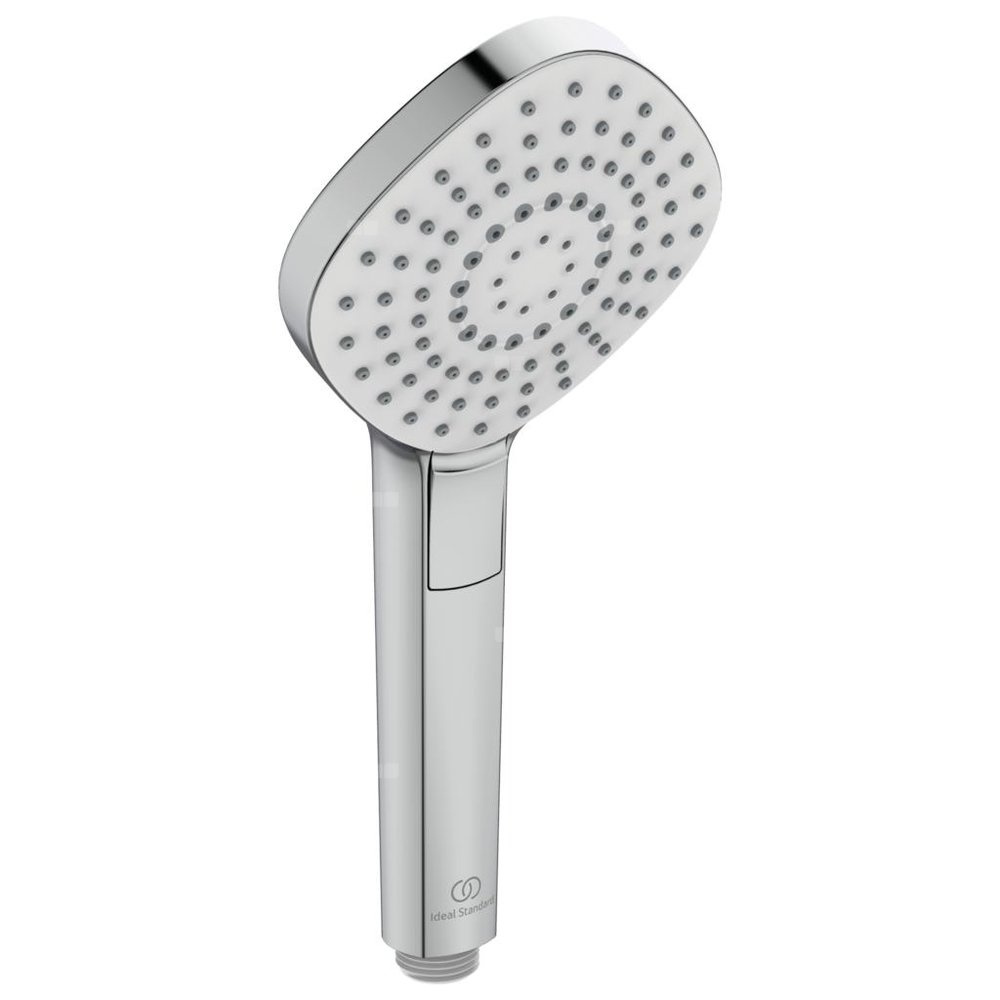 Trzyfunkcyjna słuchawka prysznicowa średnicy Ø 115 mm. Wybór strumienia wygodnym przyciskiem Navigo. Gumowe końcówki dysz zapobiegające osadzaniu się kamienia. Rodzaje strumienia wody: deszcz, drop jet, masaż. Ogranicznik przepływu wody do 8 l/min. Minimalne ciśnienie wody 0,1 bar.