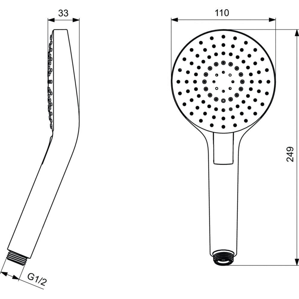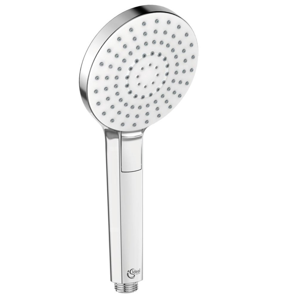 Trzyfunkcyjna słuchawka prysznicowa średnicy Ø 125 mm. Wybór strumienia wygodnym przyciskiem Navigo. Gumowe końcówki dysz zapobiegające osadzaniu się kamienia. Rodzaje strumienia wody: deszcz, drop jet, masaż. Ogranicznik przepływu wody do 8 l/min. Minimalne ciśnienie wody 0,1 bar.