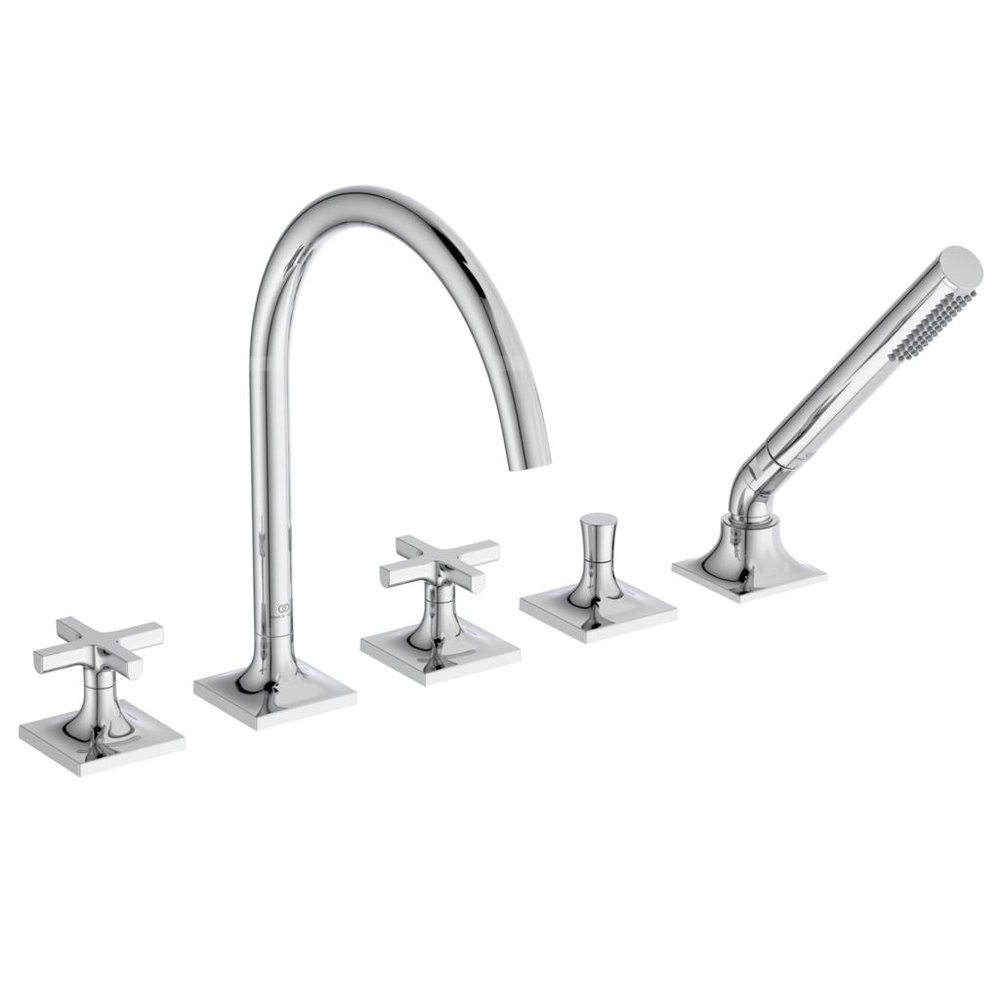 Bateria natryskowo-wannowa 4-otworowa, wylewka, uchwyty krzyżowe.