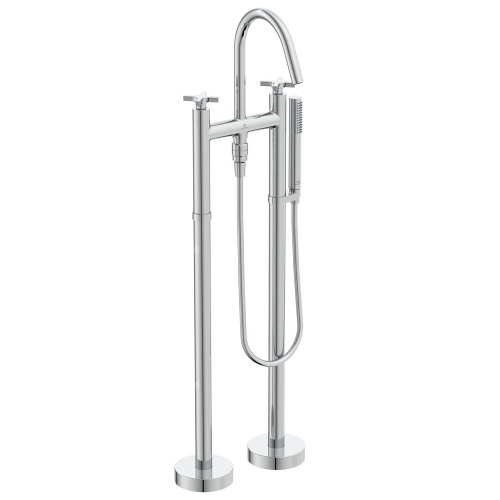 Bateria natryskowo-wannowa wolnostojąca, uchwyty krzyżowe.