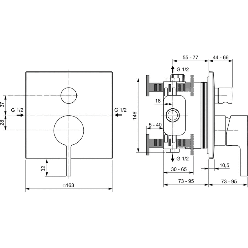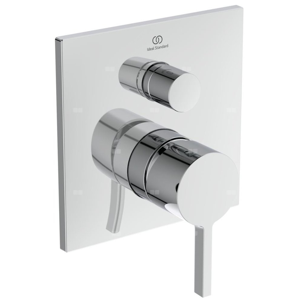 Zestaw montażowy podtynkowej baterii wannowo-natryskowej Joy Neo (widoczna część). Głowica ceramiczna IS 47mm z ogranicznikiem temperatury. Smukła, kwadratowa, metalowa rozeta z logo Ideal Standard. Metalowy uchwyt bez oznaczeń. Automatyczny przełącznik. Do skompletowania z zestawem EASY-BOX A1000NU (część wewnętrzna).