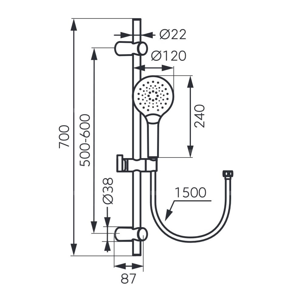 MULO natrysk przesuwny z rączką 3 - funkcyjną, chrom