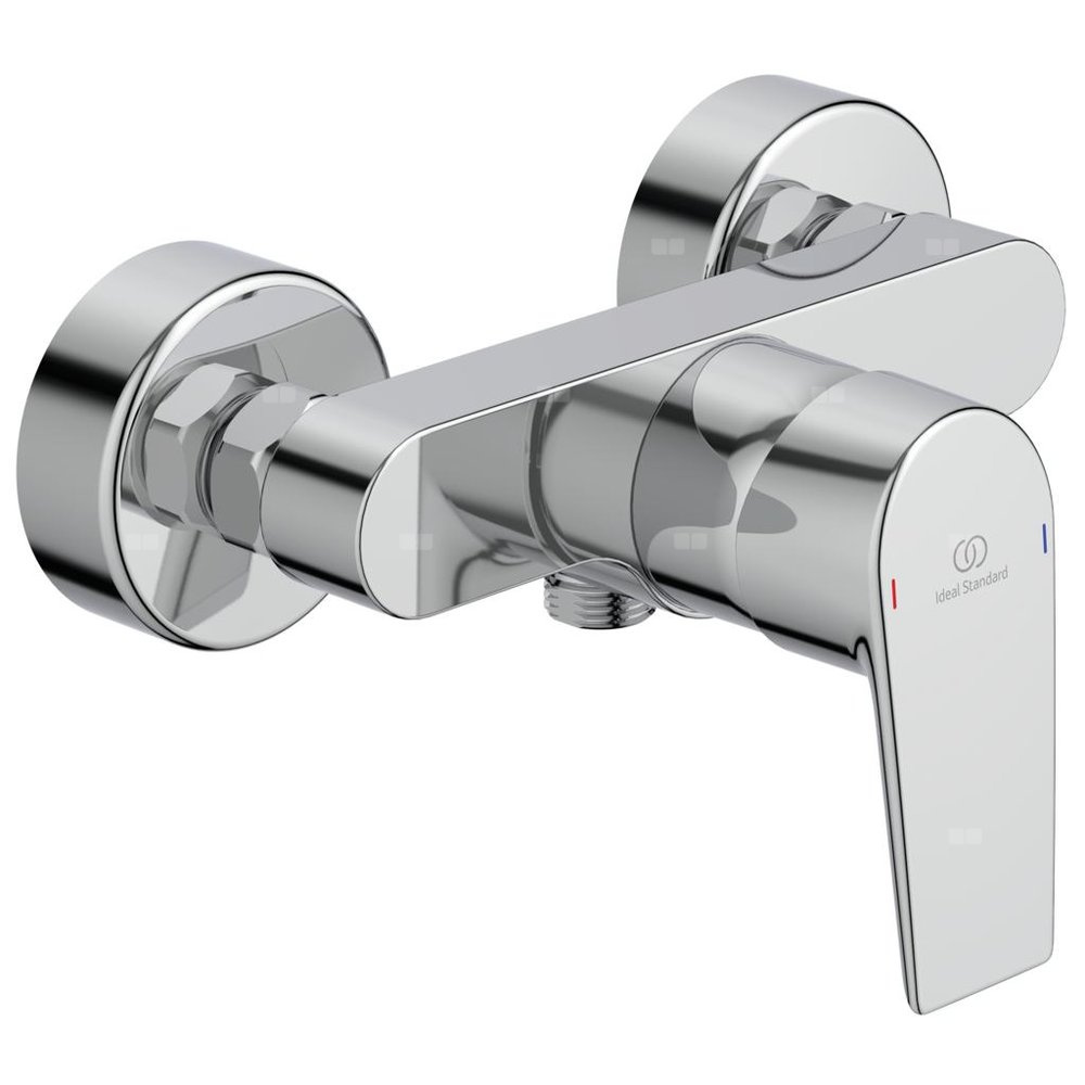 Bateria natryskowa natynkowa Tesi z zaworem zwrotnym. Głowica ceramiczna IS 40 mm z ogranicznikiem temperatury oraz ogranicznikiem przepływu. Standardowe przyłącza ścienne, zawór zwrotny, automatyczny przełącznik.