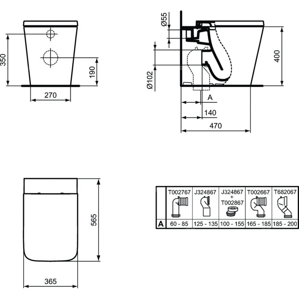 - Typ spłukiwania: Lejowe, poziomy odpływ