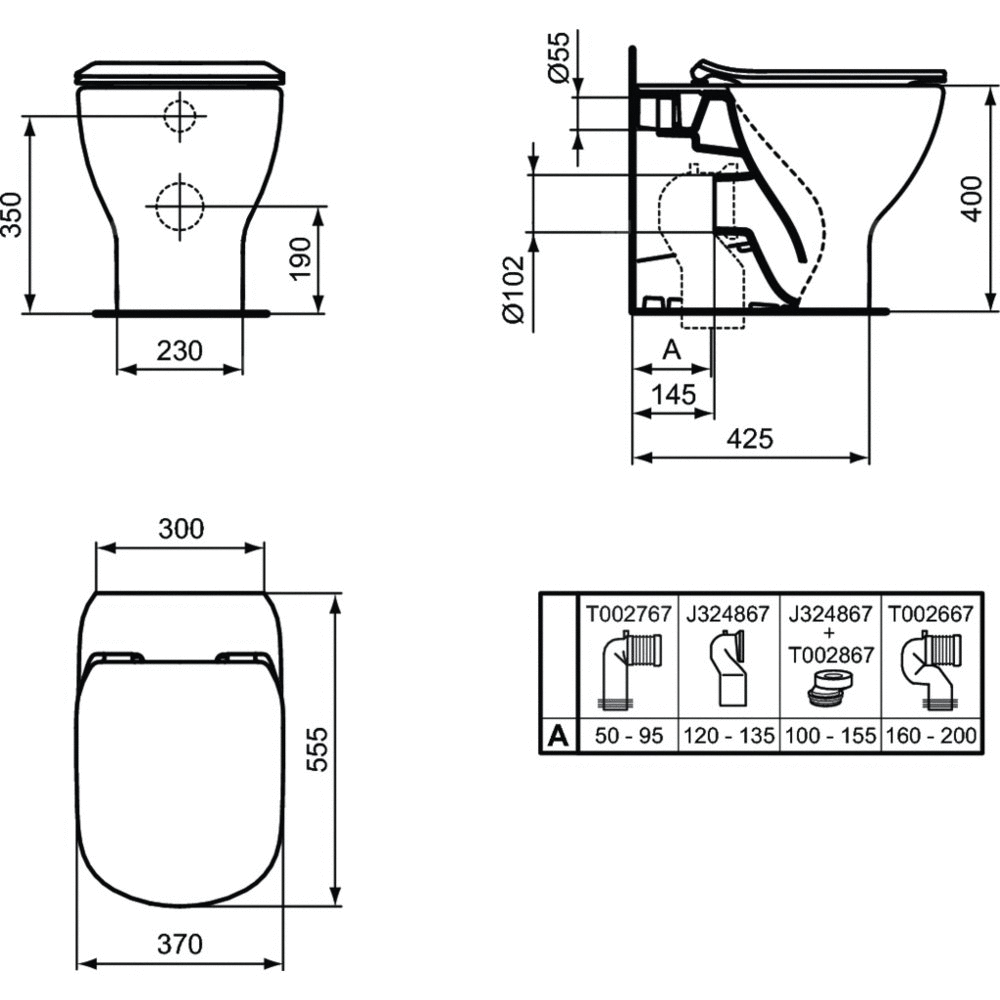 Miska WC pojedyncza Tesi stojąca, z technologią AquaBlade®. Przylegająca do ściany, lejowa, z poziomym odpływem (uniwersalnym). Zestaw montażowy TT0257919 w komplecie. UWAGA: nie zaleca się instalacji WC AquaBlade® z pneumatycznym zaworem spłukującym!. Sprawdź niezbędne wyposażenie w cenniku lub katalogu Ideal Standard.