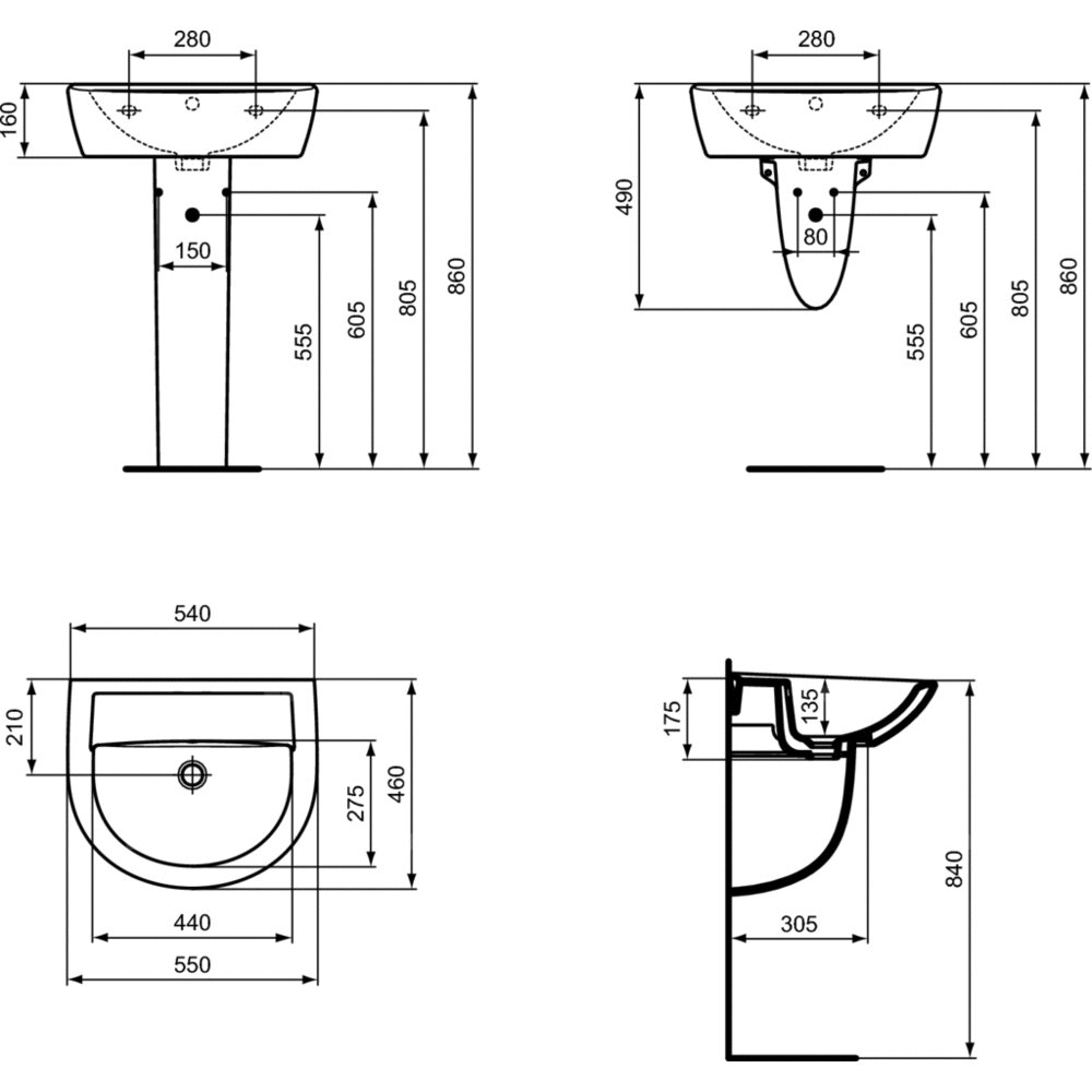 Półpostument Eurovit, pasuje do modeli umywalek o wymiarach 65, 60, 55, 50 cm. W komplecie zestaw montażowy M6 x 70 mm (WW965068).