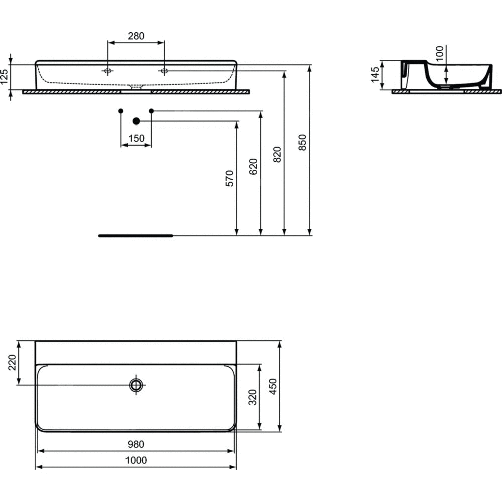 Umywalka Conca mocowana do ściany bez przelewu i otworu na baterię.