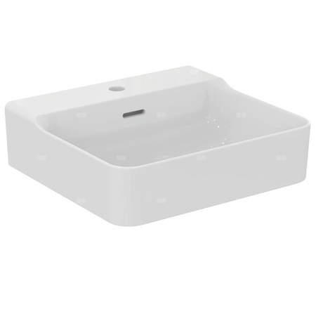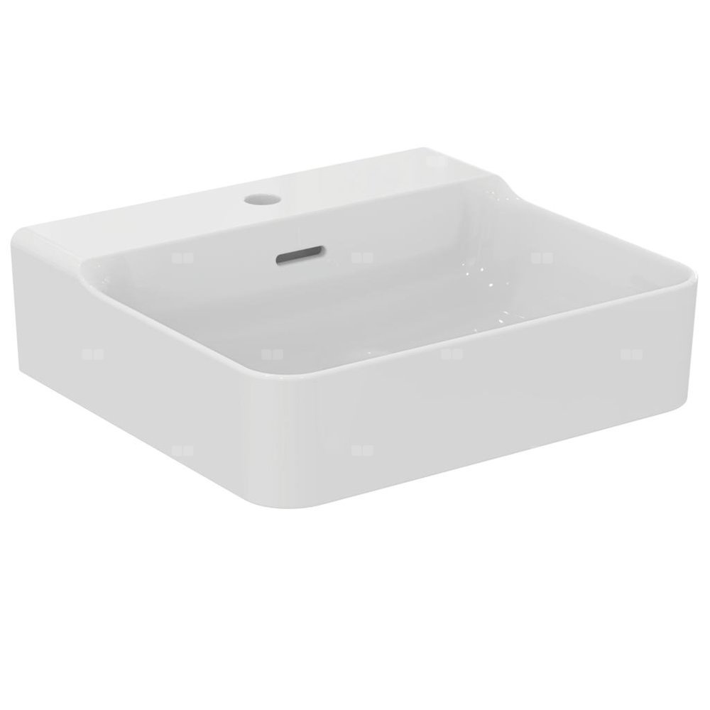 Umywalka Conca mocowana do ściany z 1 wybitym otworem na baterię oraz przelewem (kształt szczelinowy).