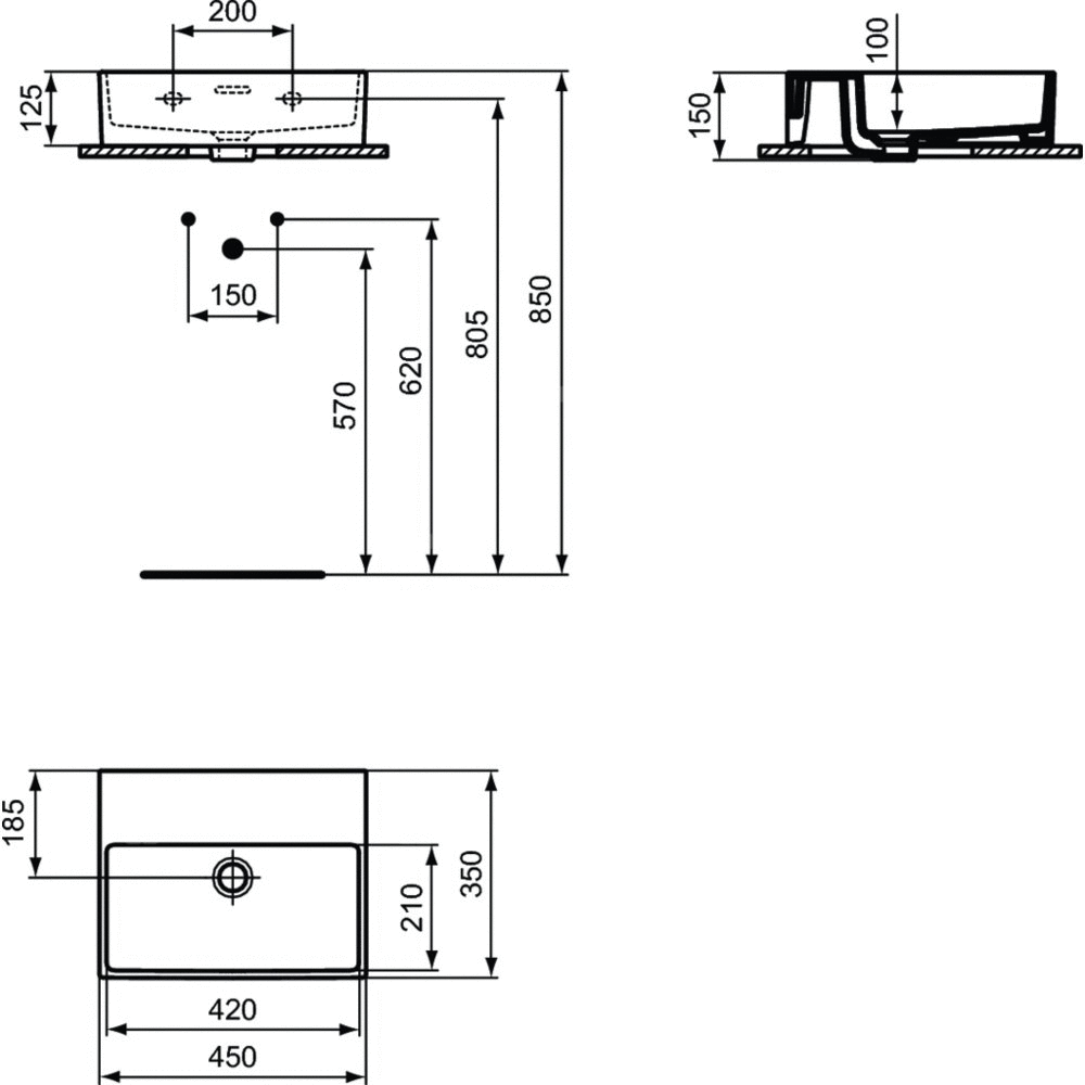 Umywalka do mycia rąk Extra mocowana do ściany bez otworu na baterię, z przelewem. Nieszlifowana od spodu (szkliwiona od spodu): nieodpowiednia do montażu na blacie (nie zapewnia dostatecznie płaskiej powierzchni). Sprawdź możliwe konfiguracje i rekomendowane wyposażenie w katalogu i cenniku Atelier Collections.