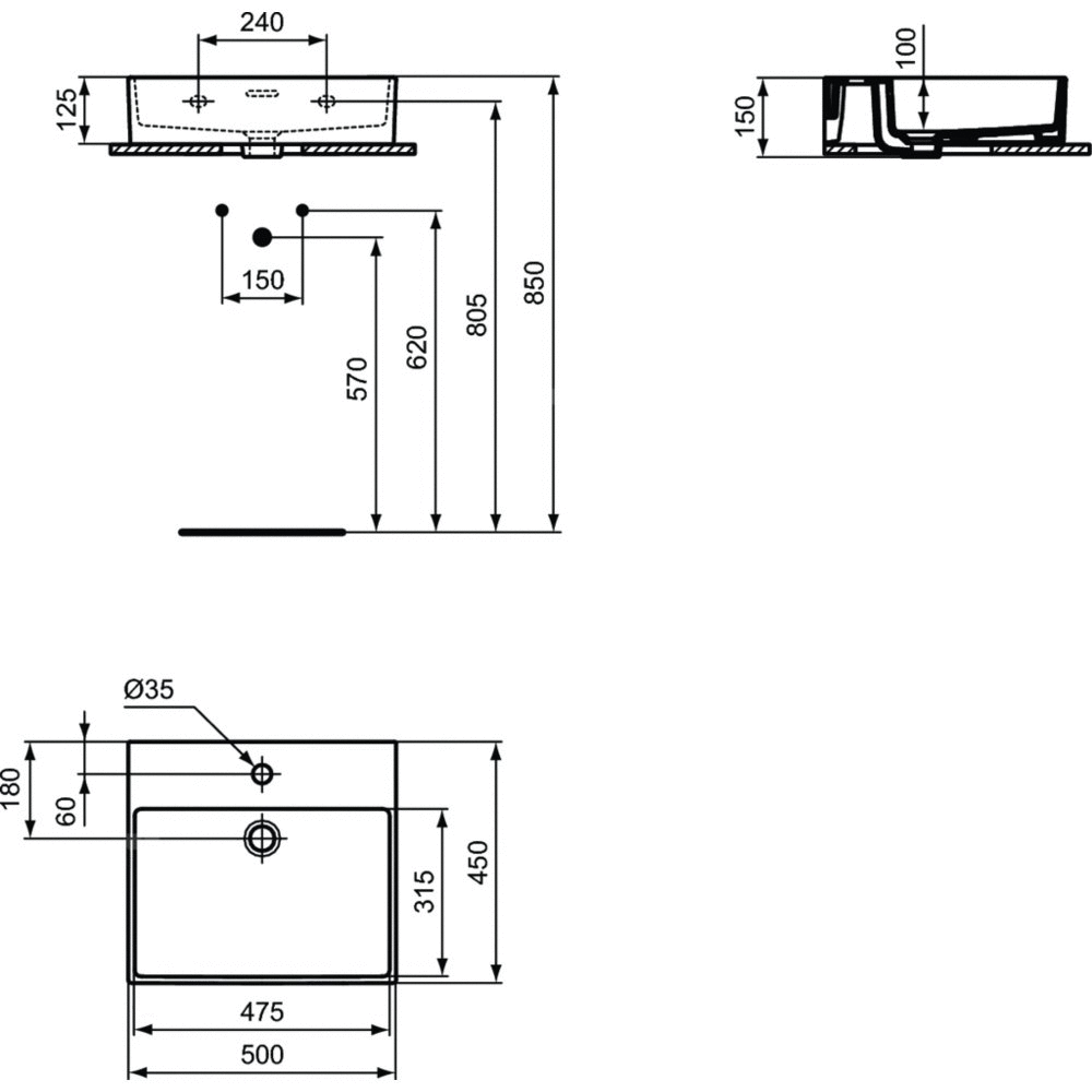 Umywalka Extra wisząca z 1 wybitym otworem na baterię oraz przelewem (kształt szczelinowy). Szlifowana od spodu: odpowiednia do montażu na blacie (zapewniona płaska powierzchnia). Sprawdź możliwe konfiguracje i rekomendowane wyposażenie w katalogu i cenniku Atelier Collections.