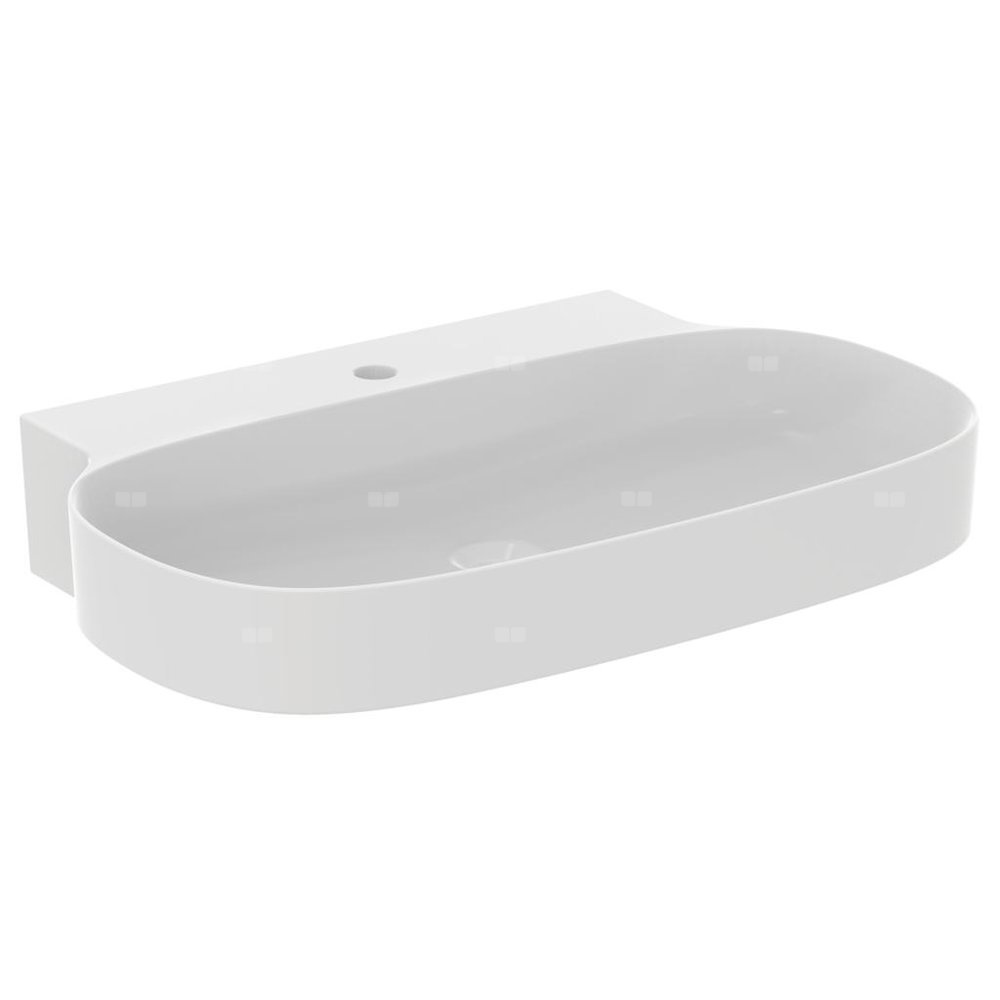 Umywalka Linda-X wisząca do montażu na meblach lub blacie (szlifowany spód). Z wybitym otworem na baterię, bez przelewu. W komplecie szablon do wycinania TT0299731.
