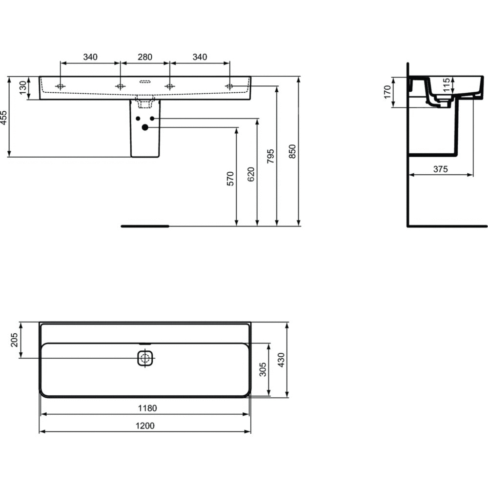 Umywalka Strada II bez otworu na baterię, z przelewem o szczelinowym kształcie oraz korkiem o białej pokrywie. Do montażu z meblami, półpostumentem T299601 lub samodzielnie z syfonem. Opcjonalny montaż z korkiem typu Click-clack z metalową pokrywą T3629AA. Zalecane wyposażenie: zestaw montażowy M10 x 140 mm - do zamówienia 2 zestawy (mocowanie 4-punktowe).