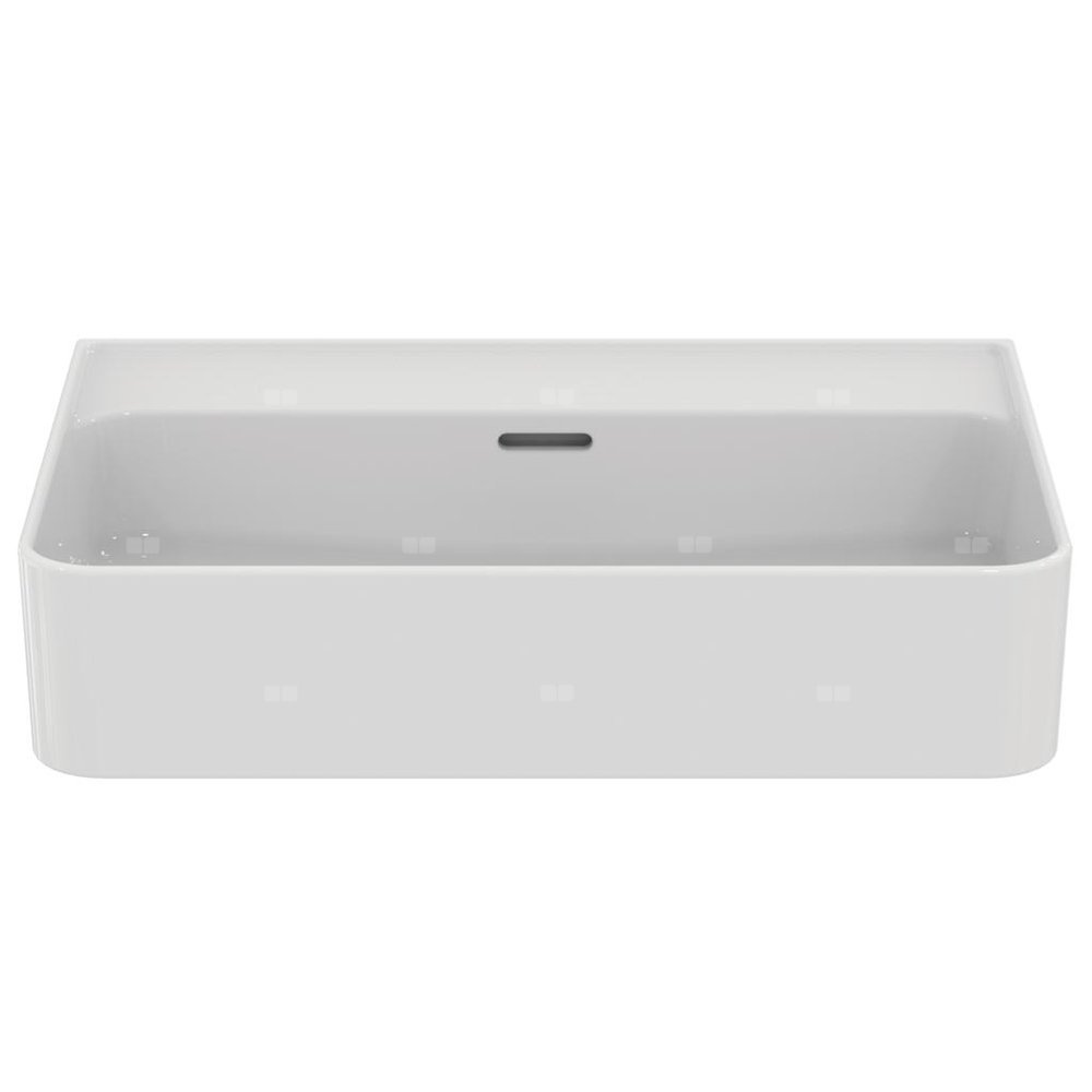 Umywalka Strada II bez otworu na baterię, z przelewem o szczelinowym kształcie oraz korkiem o białej pokrywie. Do montażu z meblami, półpostumentem T299601 lub samodzielnie z syfonem. Opcjonalny montaż z korkiem typu Click-clack z metalową pokrywą T3629AA. Zalecane wyposażenie: zestaw montażowy M10 x 140 mm.
